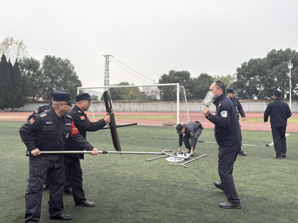 演练现场,市公安局特警支队的郭教官凭借丰富的实战经验和专业知识,详细讲解了反恐防暴演练的规范流程及注意事项。他以三人作战小组为例,演示了警棍、盾牌、钢叉等各类防暴器械的正确使用方法,并组织安保人员分组练习,确保每位参训人员都能熟练掌握操作技巧。