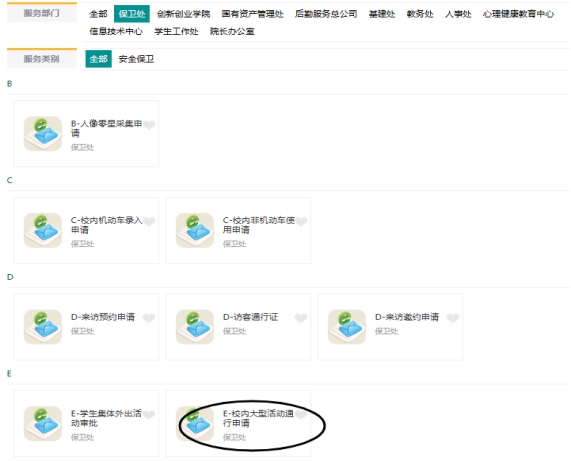 2.点击右上的所有服务,再点击保卫处或安全保卫。