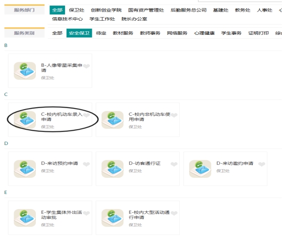 2.点击右上的所有服务,再点击保卫处或安全保卫。